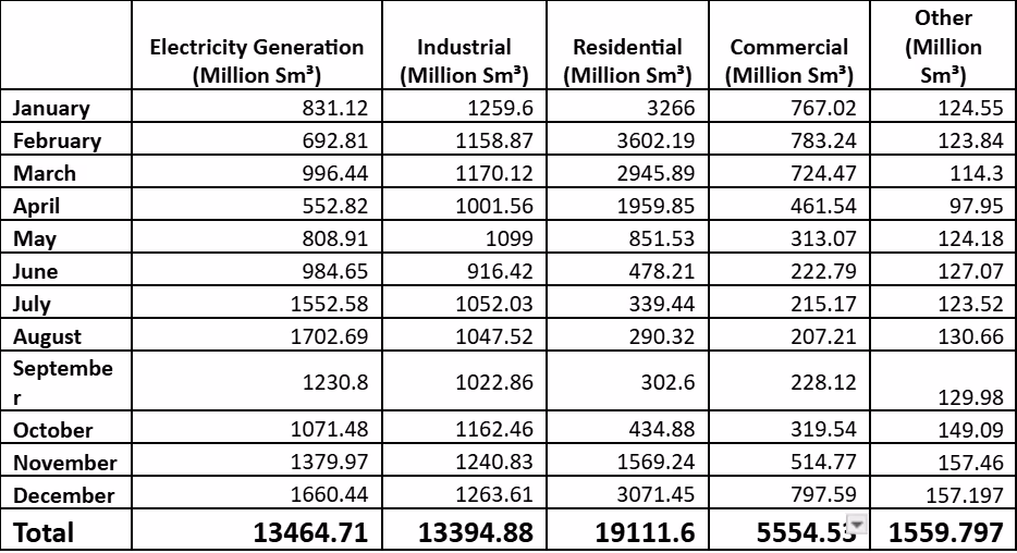Table 2 Turkey's Natural Gas Consumption by Sector (2024, EPDK Data, MMscm)